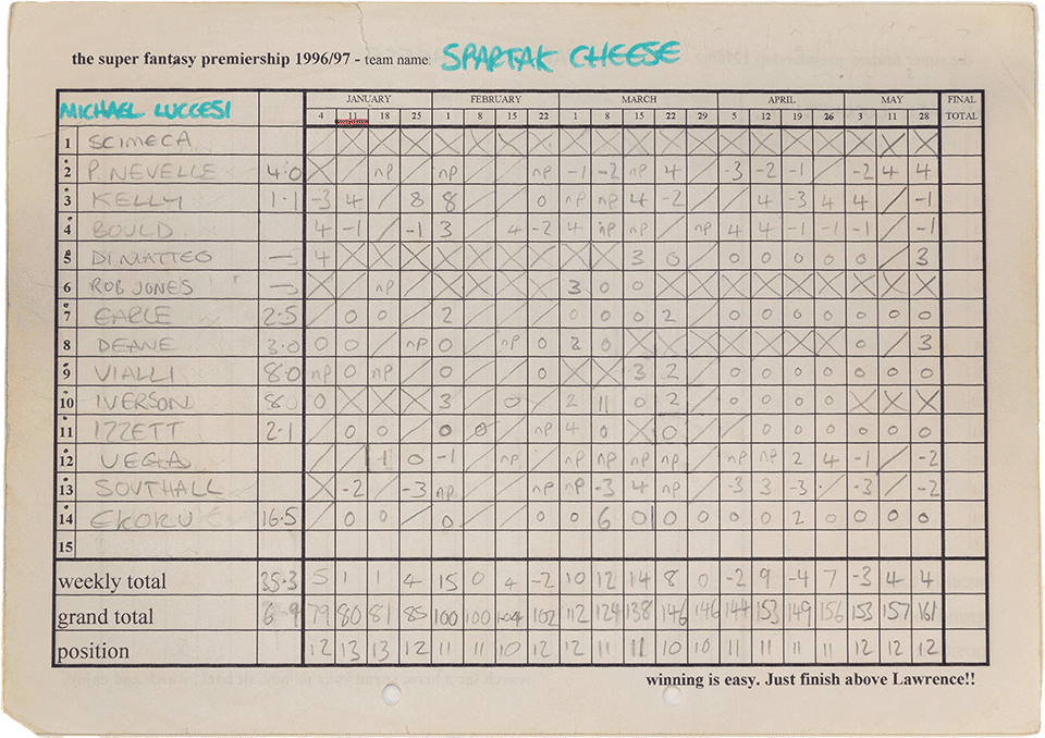 At the auction, Spartak Cheese manager Michael Lucchesi would set a new SFP record by splashing £8.0m on Gianluca Vialli.