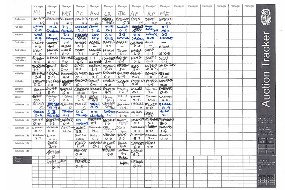 In 2006/07 the SFP went back to it’s roots using the Classic Fantasy Footbal League web site as it’s host, using the classic scoring system. There was still an auction, held in the defending SFP Champions summer house (James Roberts). Auction highlights included Henry going of over £30m again, this time to Lawrence, and a relatively young Wayne Rooney going for £27m to Richie Powell.