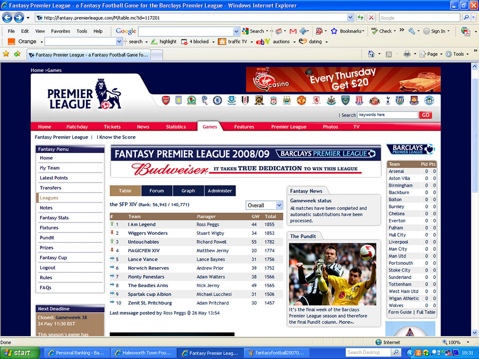 After the previous two seasons attempts at an online managed Super Fantasy Premiership, in 2008 - 2010 the Premier League’s actual official Fantasy Football game seemed to be an obvious home for our own league. The difference now would be that we would all be able to have whoever we wanted, with more than one manager able to have the same player. It was seen as the ultimate test with everyone having the same starting point and tools to their disposal. The site did all the work while we controlled squads and substitutions.