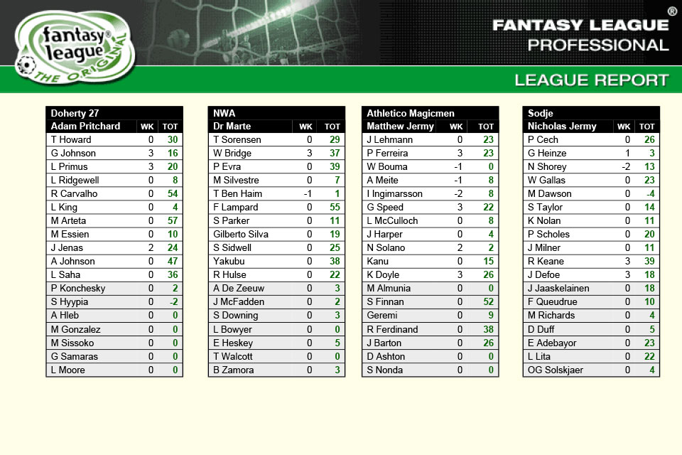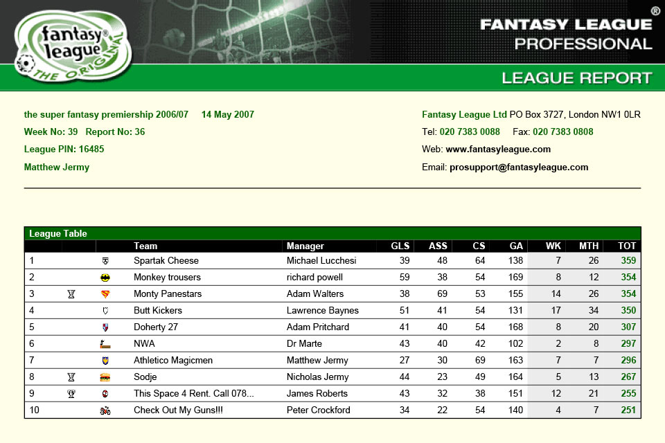 In 2006/07 the SFP went back to it’s roots using the Classic Fantasy Footbal League web site as it’s host, using the classic scoring system. There was still an auction, held in the defending SFP Champions summer house (James Roberts). Auction highlights included Henry going of over £30m again, this time to Lawrence, and a relatively young Wayne Rooney going for £27m to Richie Powell.