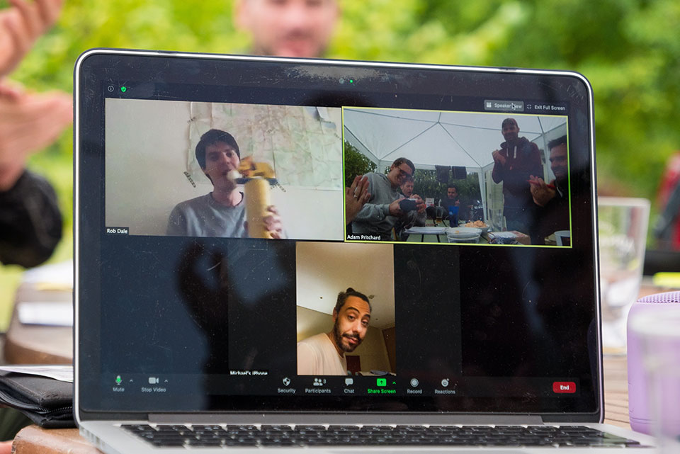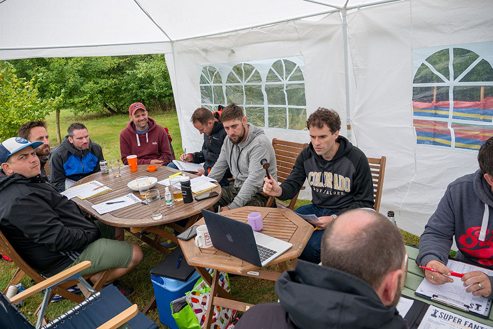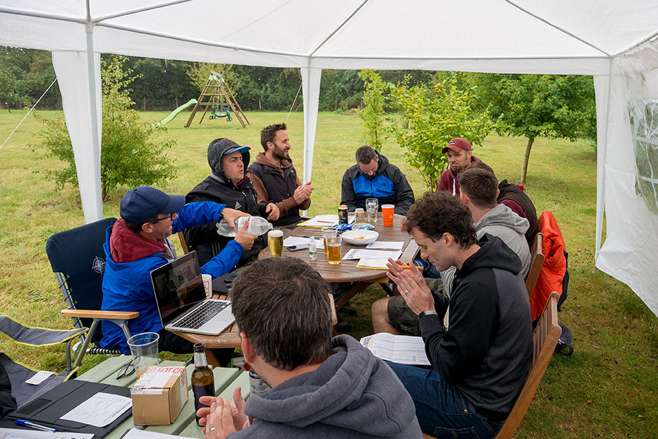 After lots of should we, could we and can we, Pritchard Senior did us proud in offering up his meadow as the venue. A marquee kept the rain at bay for the 12 managers under it, plus the fabulous last minute guest auctioneer Adam(?). The champ, now in Edinburgh, and South Korea's newest resident were beamed in live from their respective homes.